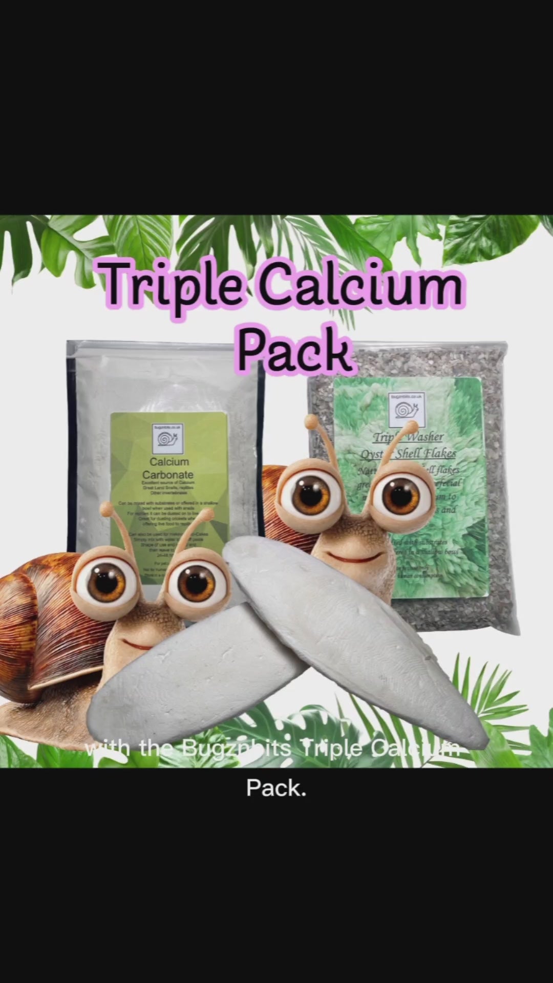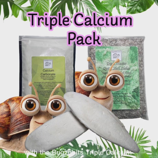 Give your snails the ultimate boost for strong, healthy shells with our Triple Calcium Pack — a natural, mineral-rich blend designed especially for land snails of all species and sizes.